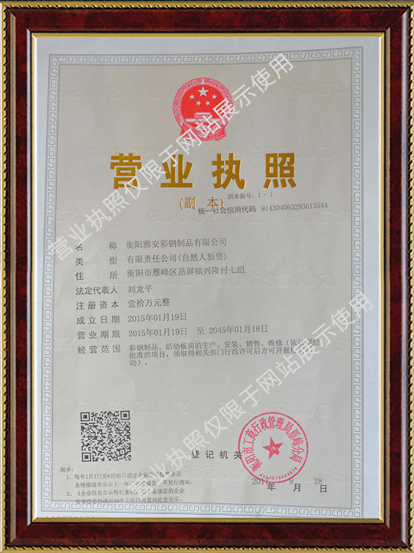 衡陽(yáng)雅安彩鋼制品有限公司位于衡陽(yáng)市雁峰區(qū)岳屏鎮(zhèn)興隆村七組,公司遵循以人為本、科技創(chuàng)新、以質(zhì)求勝、客戶(hù)至上的企業(yè)作風(fēng),完善的服務(wù)贏得了良好的信譽(yù)。全力創(chuàng)造優(yōu)良的經(jīng)營(yíng)效率。公司自成立以來(lái),擁有從事多年的技術(shù)專(zhuān)業(yè)人員,并以上乘的設(shè)備為依托,嚴(yán)格檢測(cè)手段為保障,不斷更新經(jīng)營(yíng)理念,完善管理系統(tǒng)。憑借源源不斷的創(chuàng)新精神和衷心服務(wù),致力把公司建成管理品質(zhì)精優(yōu)、城信服務(wù)的企業(yè)。